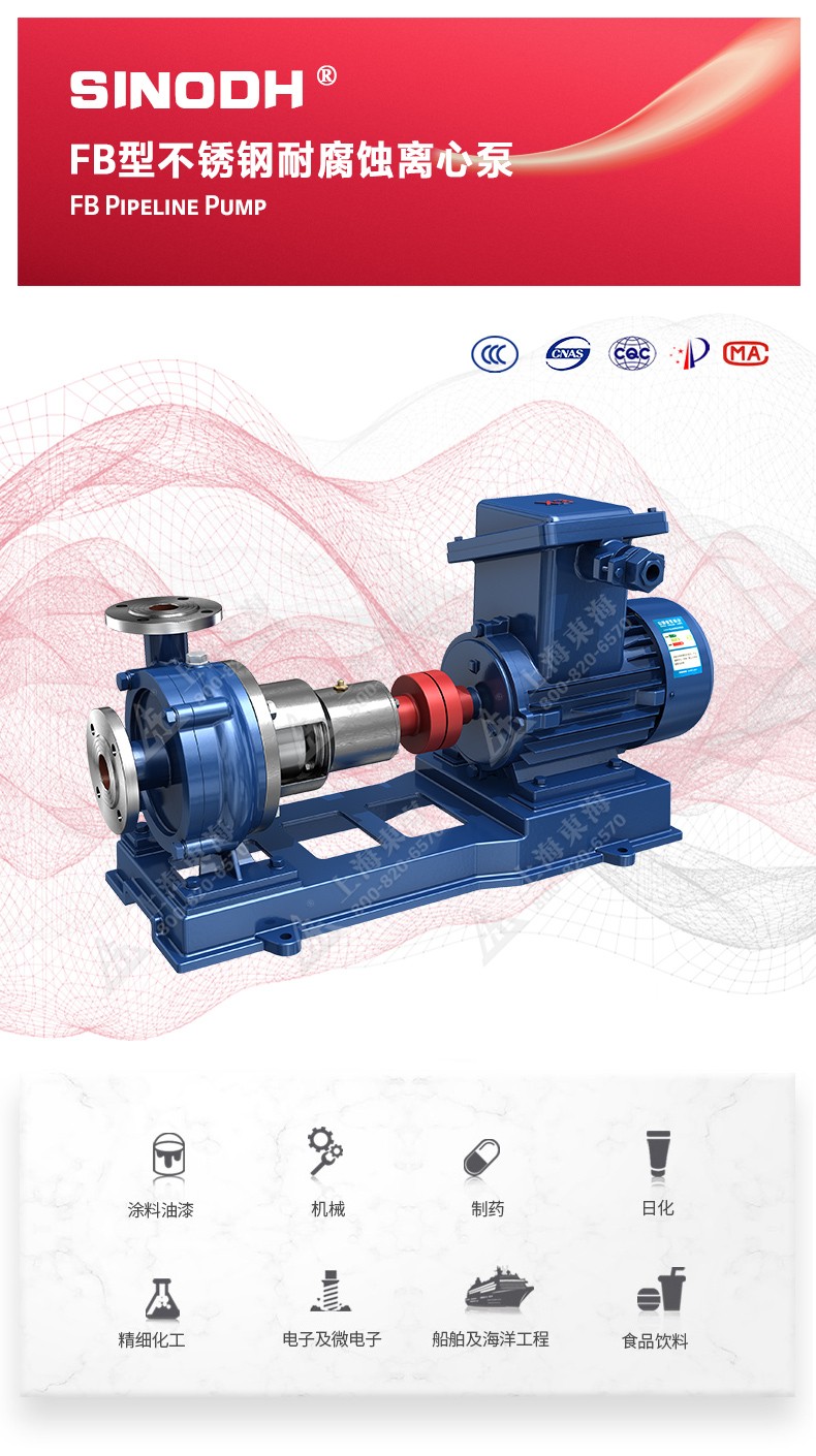 FB型不锈钢单级单吸悬臂式耐腐蚀离心泵,为爱游戏在线平台,爱游戏(中国)自主研发生产。本系列产品适用于输送不含固体颗粒,有腐蚀性液体。被输送介质温度为-20℃~200℃,泵的进口压力不能大于0.2MPa,广泛用于石油、化工、冶金、合成纤维、制药、食品、酿造等工业部门,也可供工矿、企业及城市供水、排水之用。