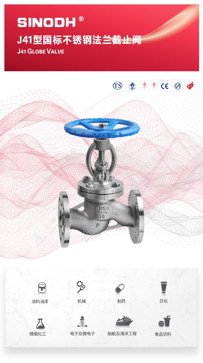 当前位置:首页 >> 阀门产品 - 截止阀 - J41型国标不锈钢法兰截止阀